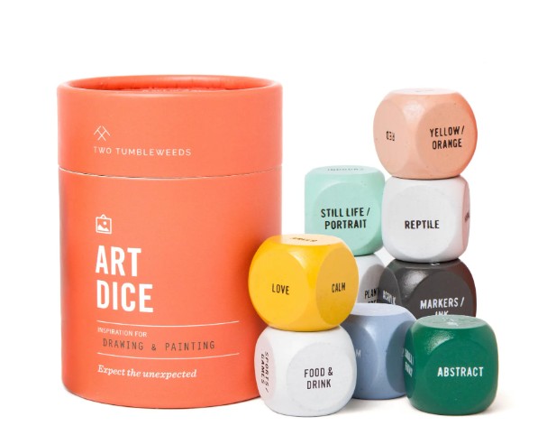 Art dice for painting inspiration and fun; available on Etsy by TwoTumbleweeds for $19.95