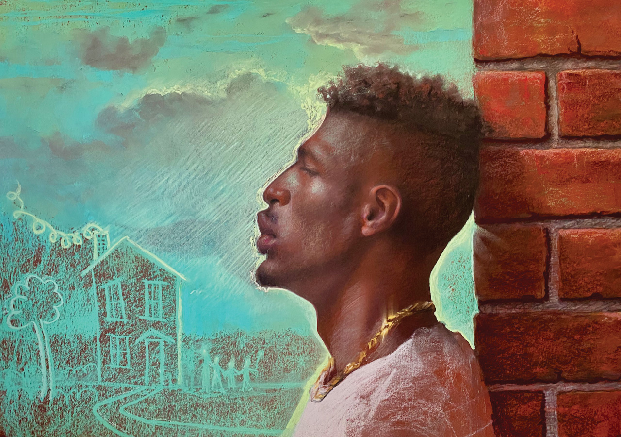 In her life-size pastel demo Naasir, Dreaming of Home, Carol Peebles captures more than a likeness — she captures a state of mind. Created from life for her atelier in New Orleans, the Blue Easel Club, the portrait began as a direct, observational study before evolving into something deeply introspective.